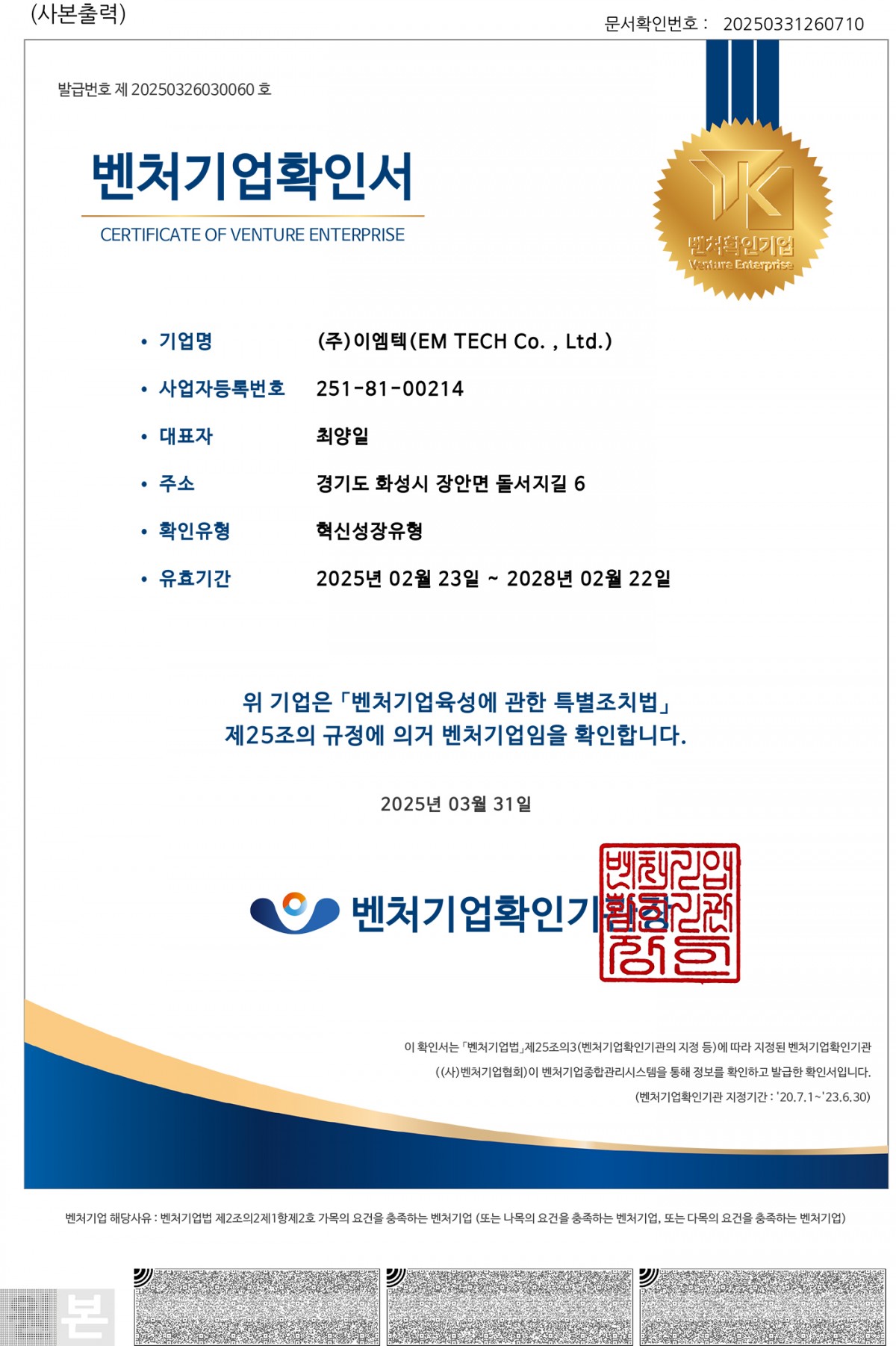 증명서 [인증서] 벤처기업확인서(20250326030060호)(25년2월23-28면2월22일)